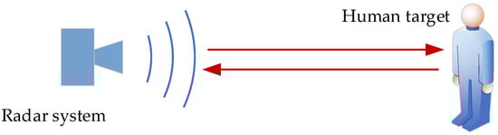 In recent years, non-contact respiration detection as the vital sign of human beings by utilizing radar systems has been widely used in medical, security, disaster rescues, and so on [1,2,3,4]. Electromagnetic waves are reflected by the human target and picked up by the radar system. The small displacement in the chest or abdominal wall associated with respiratory activity causes certain characteristics of the echo signal, such as amplitude and phase, to vary with time. This feature is not present in the echoes of other stationary subjects, and thus human targets can be recognized. Due to the penetrating nature of electromagnetic waves, through-wall detection has been widely used in concealed target detection behind obstacles [5,6]. The elaboration of the concept of small-displacement detection related to human vital signs based on a radar system and the concept of through-wall detection prompted studies to develop methods for detecting living human targets behind walls.