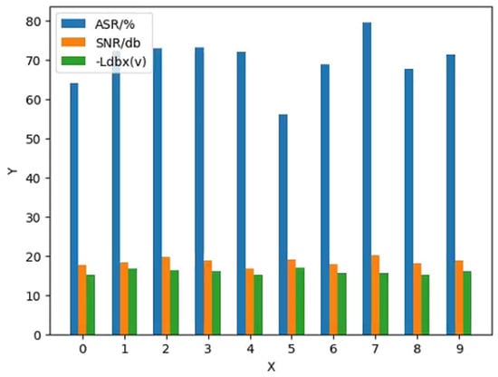 In the absence of a specific target, the objective of a malicious attacker is to deliberately cause misclassification of input samples by the classification model, resulting in a confidence level that deviates significantly from the actual label. Hence, in this section, we calculate the optimization problem of the objective function via Equation (7), derive the attack success rate via Equation (8), determine the average signal-to-noise ratio via Equation (11), and evaluate the loudness utilizing Equation (12) during experimental analysis of data.
