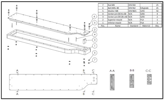 Figure 3) and vertical walls in which the draft angle has been included. The mould is then assembled with M8 × 80 screws and clamping is carried out until the upper mould flange is in contact with the lower mould (