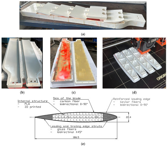 Figure 6d). To do so, the following were of great importance: the walls should be as thin as possible and the infill density as low as possible. The blade core takes the place of a structure for which traditionally, various materials are used [