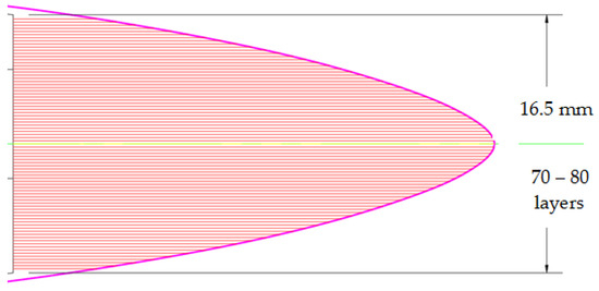 The CAD model sections of the mould were saved in STL (stereolithography) format to be imported into the Ultimaker Cura 4.13.1 manufacturing preparation software system (Ultimaker, Utrecht, The Netherlands). The manufacturing parameters for the PLA filament of the 3D printing process for the mould sections are presented in