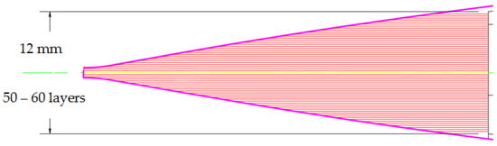 Figure 9), about 75 layers are cut, ranging in width from 5.5 mm to 31 mm. The variation in layer width is necessary to form the specific shape of the leading edge.