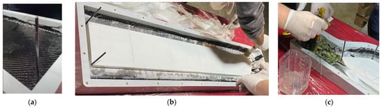 62]. A total of 1000 g epoxy resin is used for the composite blade. The resin utilized in the manufacturing process of the anti-torque blade is divided into four batches. Epoxy resin is prepared on demand as needed for layup. The time elapsed between the first and last batch of resin is 100 min. After the layup process is finished and the two halves of the mould are closed, the composite blade is left to cure at room temperature, 20 °C.