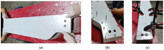 Figure 12c). In this state, the composite blade is left to cure for 48 h. For open surface application, the curing time of the resin used is 24 h but since curing takes place in a closed enclosure, double the time is allowed to compensate for the possibility of a delay in the curing process.