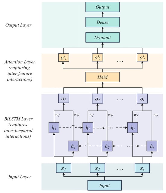 The structure of the prediction model is shown in Figure 1, which consists of four parts: an input layer, a BiLSTM layer, an attention layer, and an output layer.