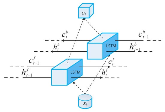 In contrast to traditional LSTM, a BiLSTM network consists of two LSTM layers for the forward and backward directions and can fully account for both historical and future information. The structure of BiLSTM is illustrated in Figure 3.