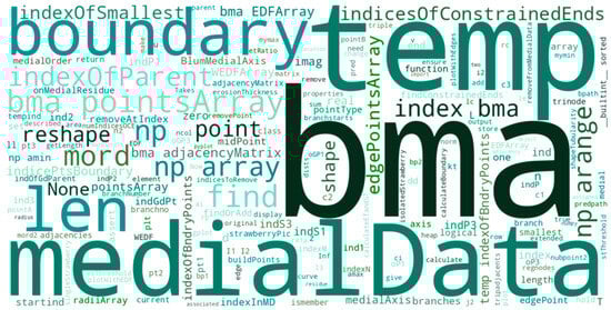 Figure 3 shows such words as boundary, points, and medialData that prevail in the code as the initial emphasis was on image sketch abstraction from the center of balance, a pivotal aspect of this research that lays the groundwork for enhancing motion detection and tracking. The process commences by calculating the target object’s center of gravity, followed by creating a skeleton of the object.