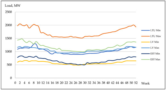 34], and according to the maximum values of individual countries, which are usually experienced during the winter season in our region. The load data of the Baltic countries observed in 2022 are presented in