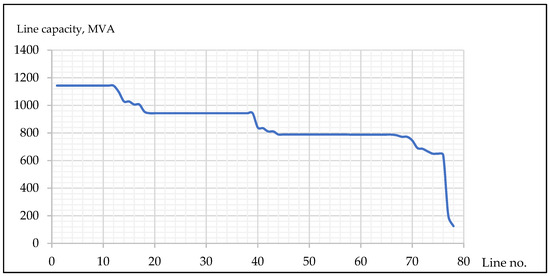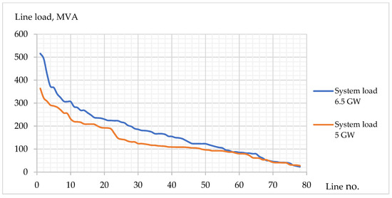 The proposed line selection algorithm is being used in pre-contingency mode. The SIEMENS PSSE 33.12 software version was used for simulations. The fixed slope Newton-Raphson method was used in power flow calculations. Allowable system total absolute mismatch—0,5 MVA, the maximum iteration number—20.