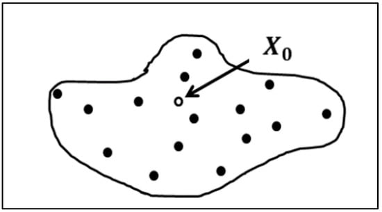Spatial kriging is an optimal interpolation technique that uses the theory of regression to predict the value at an unobserved location using values of observed neighborhood locations. Here, observed values of neighborhood locations are weighted according to the covariance values. As depicted in Figure 2, consider the location of interest, that is surrounded by the neighboring observed locations, .