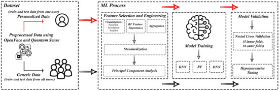 Personalized models, or the creation of a separate AI model per person, offer the advantage of tailoring the emotional assessment and therapy process to each individual’s unique facial dynamics. By primarily considering the specific emotional nuances of the individual, these personalized models enhance the accuracy of emotion recognition, resulting in more effective outcomes for digital therapeutics and digital phenotyping. Prior work has demonstrated that personalization can enhance the performance of emotion recognition systems [16,17,18]. Personalized ML techniques have the potential to unlock more precise and context-aware emotion recognition capabilities compared to the traditional paradigm of using generic models.