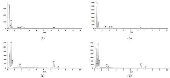 The results of EDS measurements for yeast cells marked in Figure 7: (a) cell 1; (b) cell 2; (c) cell 3; (d) cell 4.