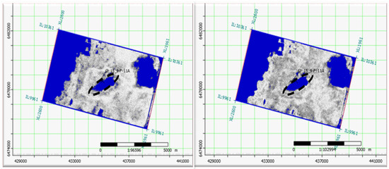 Figure 10 shows the inverted primary wave impedance (AI), shear wave impedance (SI), and the density for the seismic section inline 10,154. The inversion analysis shows a good fit between the inverted logs and the original logs (Figure 11). The simultaneous and sequential prediction results are shown in Figure 12, Figure 13 and Figure 14.