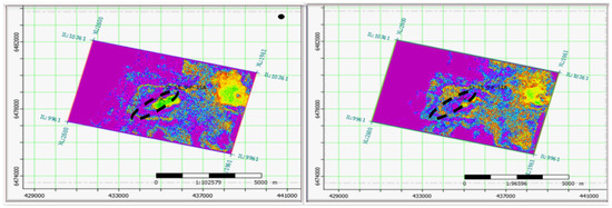 The results of the petrophysical inversion show that the sequential prediction approach produces a higher resolution than the simultaneous case in this Volve example. Because of their high porosities and thicknesses, the sands in the Hugin Formation window are suitable for lithofluid discrimination, according to the Vclay/porosity modeling results. The impact is particularly noticeable in the in situ conditions for most of the wells in the upscaled domain. Overall, the outcomes in every Volve field well are consistent. However, separating the hydrocarbon scenarios (oil vs. gas) could be difficult. The cross plots of AI vs. PR colored with facies also demonstrate the effectiveness of discrimination in this area.