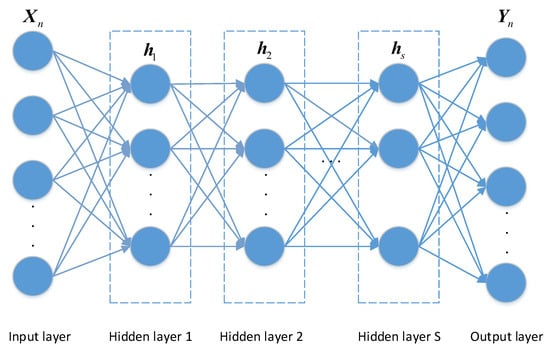 An SSAE is a deep neural network model composed of multiple SAEs. By taking the hidden layer of the previous SAE as the input of the next SAE, each hidden layer is a non-linear mapping representation of the output of the previous layer. With each additional hidden layer, the network can calculate a more complex non-linear mapping relationship. It can obtain the deeper and lower-dimensional features of the original data, and this model has a strong feature mining and expression ability. Its network structure is shown in Figure 2.