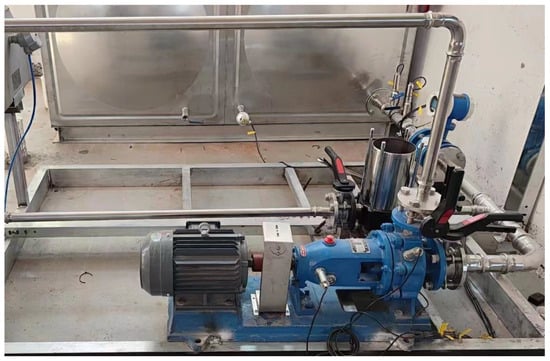 In order to verify the effectiveness of the MCP status recognition method proposed in this paper, an MCP test bench was built. A vibration acceleration sensor was used to collect the vibration signals of the MCP under different degrees of cavitation damage, and status recognition was carried out using the method proposed in this paper. The experimental bench is shown in Figure 4.