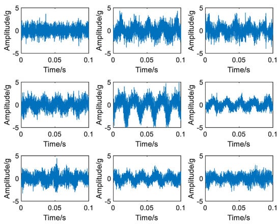 The time domain signals under each MCP state are shown in Figure 6, below. From the perspective of vibration amplitude, the vibration amplitude of an MCP under different states does not increase; regarding the trend of the waveform, only the S5 state is abnormal, and the differentiation in other statuses is not large.