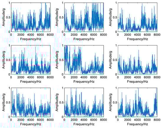 The normalized amplitude spectra in the frequency domain under each MCP state are shown in Figure 7, below. As can be seen from this figure, each normalized amplitude spectrum of an MCP under different states has its own characteristics, and several states can be identified with the naked eye, which is also the reason why in this paper we chose to extract MCP features from frequency domain signals.