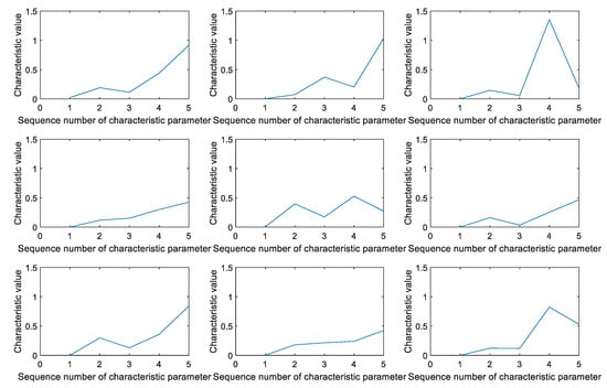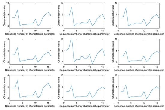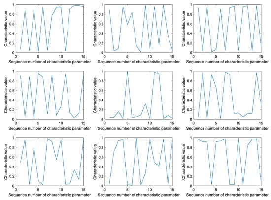 Fifteen characteristic parameters extracted under the nine MCP states have been randomly selected for display, as shown in Figure 8 below. It can be seen from this figure that the characteristics in the MCP vibration signals extracted with the SSAE can reflect their different statuses.