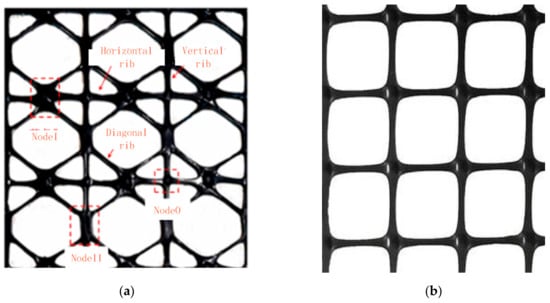 Geogrid construction. (a) Four-way geogrid; (b) Two-way geogrid.