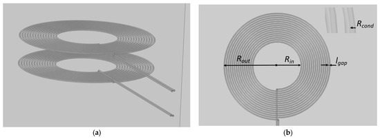 Geometries of the circular coils: (a) with 10 turns; (b) with 20 turns.