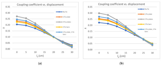 Coupling coefficient vs. longitudinal displacement: (a) circular coils; (b) square coils.