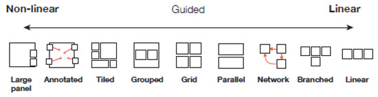 - Lechner, V.E. Arrows and their modern versions: Narrativity signalled by lines in data visualizations. J. Vis. Lit. 2021, 40, 51–70. [Google Scholar] [CrossRef]