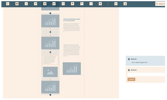 ![]() | Real-time Environment: To encourage collaborative prototyping and storyboarding activity, we designed a real-time workflow where collaborators individually yet simultaneously participate in the story design. All the different panels and features in DataStoryDesign are in real-time. Real-time systems remove the burden regarding the physical distance requirements for certain activities. However, we do not evaluate this aspect since this study focuses on the design language’s applicability. Therefore, we are more interested in knowing the effect of the design language on the prototyping and storyboarding process. |
