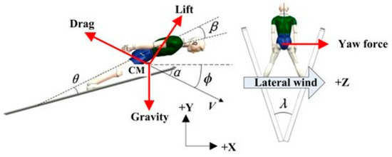 - Cao, L.; Guo, Y.; Li, X.; Chen, L.; Wang, X.; Zhao, T. Optimization of ski attitude for the in-flight aerodynamic performance of ski jumping. Biology 2022, 11, 1362. [Google Scholar] [CrossRef]
