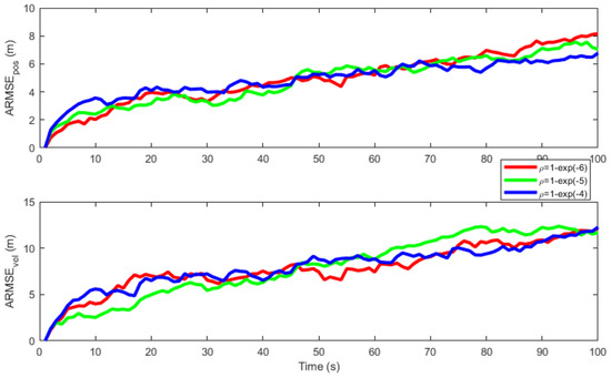 To compare the state estimation accuracy of the aforementioned nonlinear filtering algorithms, the root mean square error (RMSE) [39] and the average root mean square error (ARMSE) of the state vector is chosen to represent the filtering accuracy, and is defined as follows: