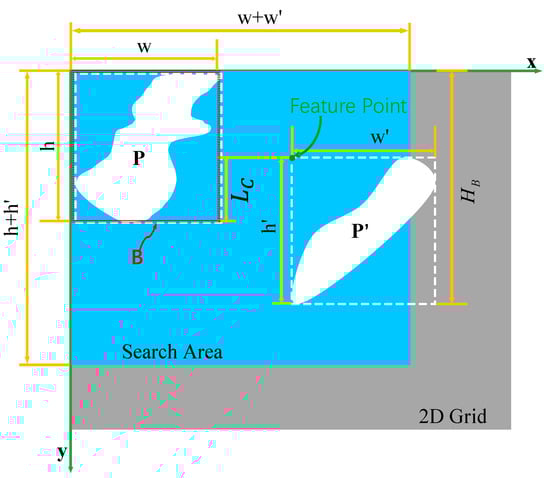After patch sorting, we will use the positioning metrics to determine where the patch should be positioned. The positioning metrics are a standard used to measure the position of patches. Each patch must calculate the corresponding positioning indicator to determine its final position. The calculation of positioning metrics comprehensively considers the characteristics of patches that have been packaged and to be packaged. Specifically, this includes the Common Area Length, recorded as , and the height of the generated bounding box, recorded as . It is shown in Figure 8. is the alignment between the two patches and is equivalent to the length of the common portion of the two patches projected onto the Y-axis. These positioning metrics need to be calculated during the packing process. The patch to be positioned is compared with each previously positioned patch according to the positioning metrics in order to select the best position. Once the packaging is completed, an occupancy map can be created to store these patches.