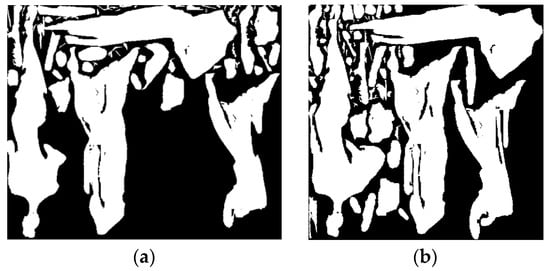 In addition to using BD-rate to evaluate the packing performance, we also calculated the reduction in occupancy map size as a measure of the packing performance. Figure 11a shows the occupancy map generated by the original method, while Figure 11b shows the occupancy map generated by our method. DAPP can generate smaller occupancy maps. Table 7 shows that the DAPP results in a maximum reduction of 20.14% in the area of the occupancy map. An average reduction of 6.92%. The reduction of the occupancy map also leads to an improvement in the performance of point cloud compression. As shown in Table 8, the BD-rate of D1 has an average gain of −0.91%. The average BD-rate gain of D2 is −1.16%. The BD-rate of Luma gain of −1.03%, the BD-rate of Cb gain of −0.45% on average, and the BD-rate of Cr gain of −0.81% on average.