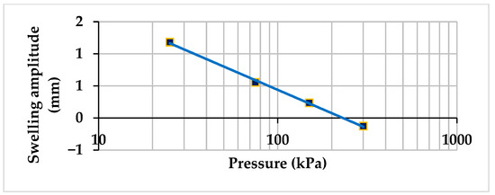 Relationship between swelling amplitude and applied stress in loaded swelling pressure test for initial condition (Fs = 10%, = 14.66 kN/m3, SR = 75%).