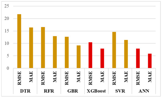 In this section, a comprehensive comparison is conducted among the algorithms employed in this study, including decision tree regression (DTR), random forest regression (RFR), gradient boosting regression (GBR), support vector regression (SVR), and artificial neural networks (ANN). These algorithms have been chosen for their common use in previous studies.