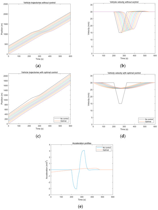 - Roncoli, C.; Papageorgiou, M.; Papamichail, I. Traffic flow optimisation in presence of vehicle automation and communication systems–part II: Optimal control for multi-lane motorways. Transp. Res. Part C Emerg. Technol. 2015, 57, 260–275. [Google Scholar] [CrossRef]