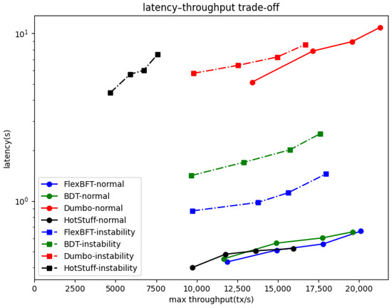 Comparative throughput–latency performance.