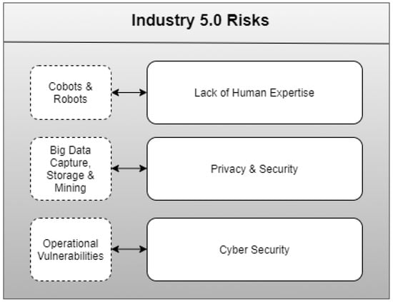 According to what has been observed so far, Industry 4.0 presents one of the biggest challenges for cyber security because it relies on IoT, cloud computing, AI, and other technologies that make systems and data vulnerable to attacks from malicious individuals. In light of this, Industry 5.0 also utilized these technologies, and cybersecurity threats are enormous. Unauthorized access to robots, the alteration of AI algorithms, or the interruption of human–machine communication are all examples of cybersecurity hazards. Strong cybersecurity measures, including encryption, access control, secure communication protocols, intrusion detection systems, and routine software updates, are required by Industry 4.0 and Industry 5.0 to handle these concerns. To keep one step ahead of cyber attackers, organizations also need to engage in employee training to raise security awareness and regularly monitor and assess their systems for any vulnerabilities. Overall, cyber security continues to be a crucial component of Industry 4.0 and Industry 5.0, and it is crucial to adequately handle these risks to guarantee the safe and secure adoption of cutting-edge technology in the industrial sphere. Security is a barrier since Industry 5.0 must be established before ecosystem trust can be built. When deploying IoT nodes, authentication is used to interface with a variety of devices and protect against future quantum computing applications. The use of automation and AI in Industry 5.0 presents difficulties for the business and calls for trustworthy security. Since ICT systems are at the core of Industry 5.0 applications, strict security standards are required to avoid security risks. Risks associated with Industry 5.0’s integration of cyber-physical systems (CPS) include supply chain vulnerabilities, cybersecurity threats, privacy concerns, operational safety, interoperability issues, and ethical problems. Robust encryption, redundancy, fault-tolerant design, and ethical concerns are only a few of the components of an all-encompassing strategy that must be based on technological, regulatory, and ethical considerations to guarantee secure CPS integration. Because of the diversity of the technical landscape, Industry 5.0 presents varying risks connected with different types of assets. Safety issues are raised by robotics, necessitating careful programming and tangible fail-safes to stop mishaps. AI systems provide ethical and privacy challenges that necessitate open algorithms and compliance with data protection laws. The introduction of cybersecurity vulnerabilities by IoT devices highlights the necessity of secure communication methods and frequent updates to minimize the risk of possible breaches. To meet the particular problems of each asset class, which include ethical, regulatory, and technical aspects, customized risk management solutions are needed [60].