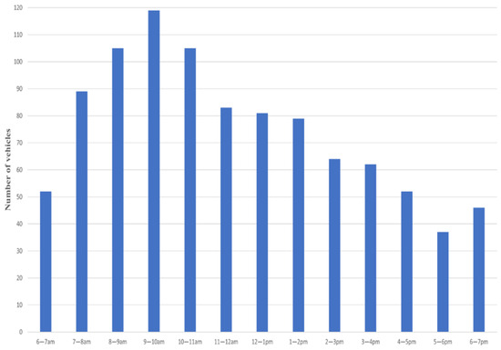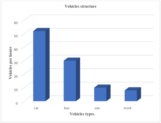 As a result, we gather sets of result data corresponding to each traffic volume group, travel time, traffic load, red light duration, and number of vehicles, and through data from the general traffic data (GTD), Figure 5 shows the vehicle’s structure.