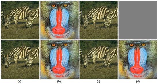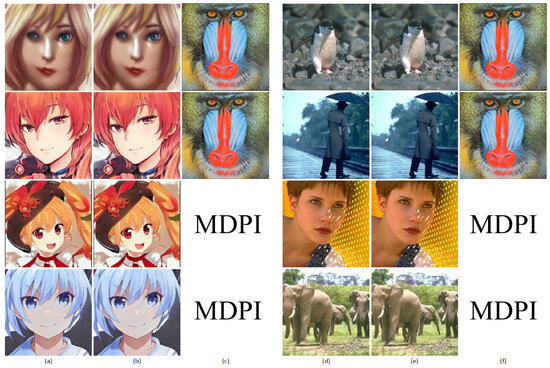 Parameter Setting. All images were standardized to a size of . We respectively utilized “Baboon” and “MDPI” as watermark images, with a fixed watermark size of . Regarding adjustable parameters, we empirically set , , . We used the Adam optimizer for training with a learning rate of . Our method was implemented on a single TITAN RTX GPU with CuDNN acceleration.