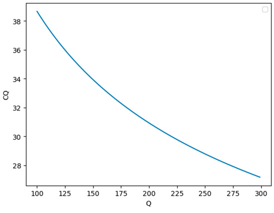 In this section, we provide numerical illustrations to demonstrate the performance of our proposed model compared to the existing benchmark models. Additionally, we demonstrate how the contract parameters affect the bargaining structure of each member in the supply chain. We use specific parameter values, p = 60, s = 10, w = 40 (under wholesale contract), , and r = 0.8 (under learning effect case). We assume that the demand variable X follows a uniform distribution, X ~ Uniform (100, 300). To visually represent and analyze these results, we leverage an open-source ‘matplotlib.pyplot’ library (https://matplotlib.org/) in Python version 3.10. Figure 1 shows the production cost over production quantity under learning-curve effects.