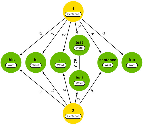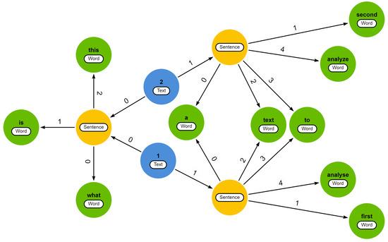 - The property, indicating the rank of a textual node within its higher-level text element, is assigned as . This property is required to reconstruct a certain text based on its graph-representation.