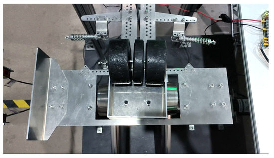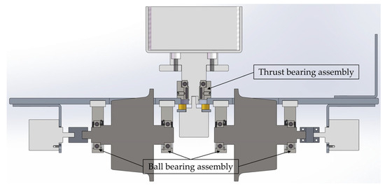 The three most important points for decreasing bearing frictions are guaranteeing installation accuracy, adopting high-quality bearings, and lubricating bearings before experiments. The carrier plate was processed in a CNC drilling and milling machine with a machining process accuracy of . The thread holes can be located accurately to guarantee installation accuracy. As shown in Figure 34, there are two types of relative rotations on the scaled IRW. One is the wheels’ rotational motion to the carrier, and the other is the IRW’s yaw motion to the traction plate. The ball bearings and thrust bearing were bought from an online professional machine parts supplier, MiSUMi, to reduce rotational frictions. The bearings’ accuracy satisfied the Japanese standard JIS B 1514 Class 0 [24], meaning the rotational frictions of the bearings themselves are small enough. Moreover, we lubricated these bearings before experiments to decrease the bearing frictions.