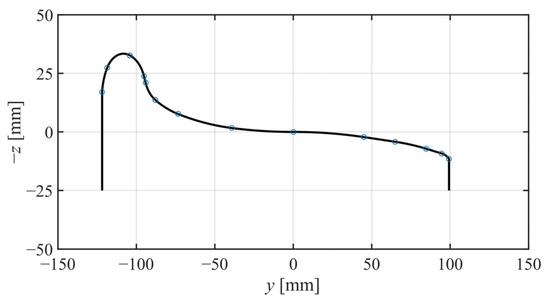 The larger the machine part is, the harder to guarantee the machining accuracy. The largest machine part of the scaled IRW experimental system is the roller, which also can input irregularity excitations on the IRW’s wheels and affect the dynamic processes. Thus, the machining tolerances of the roller, especially of the surface profile near the wheel–roller contact patches, should be reduced. We collaborated with a machining company to build the experimental system. They have a large CNC lathe capable of machining a cylinder up to 60 cm in diameter, with a machining process accuracy of . The geometry information of the surface profile was coded into the CNC lathe so the nonlinear surface profile could be well processed. We used a dial gauge to check several points of the surface profile to check the machining tolerances, as shown in Figure 33. Because of the nonuniformity of materials, the roller will slightly deform with time. When the heavy scaled IRW with vertical loads runs on the roller, it will also slightly deform. In addition, the assembling clearances in the whole mechanical system deteriorate the machining working accuracy. Overall, the machining tolerances cannot be decreased to . We have made three versions of the experimental systems and can guarantee the machining tolerances within of the best one.