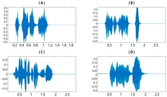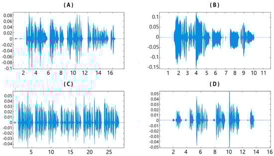 CSU 2021 speech emotion dataset—general public: (A) angry, (B) happy, (C) neutral, and (D) sad.