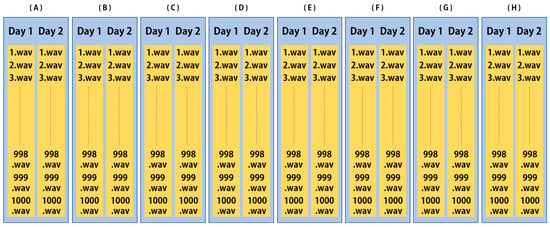 The dataset above, created by Chosun University in 2022, comprises data from 200 members of the general public. It was acquired for classification into eight emotional states: happy, neutral, angry, sad, chagrin, disgust, fear, and surprise. For each emotion, ten situations and ten short lines suitable for it were selected to prompt participants to act with the intended emotions. A Sony stereo lavalier microphone (ECM-LV1) was used as the acquisition equipment to record signals at 48 kHz. They were recorded alone in a quiet space to minimize noise as much as possible. The data were organized in the WAV format, with each participant contributing ten files per emotion, a total of 80 files per person. The overall dataset, consisting of 16,000 files, was configured as shown in Figure 16. Data samples are as shown in Figure 17.