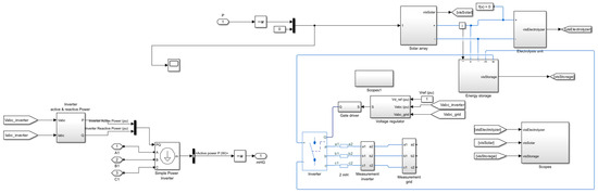 Designing a Hybrid Solar-Hydrogen model in Simulink that depicts the interactions between an electrolyzer, energy storage components, and solar photovoltaic (PV) system is the first step in designing a hybrid solar-hydrogen system. The PV system, including the panels, inverters, and controllers, can be represented using Simulink’s graphical user interface. The electrolyzer stack and hydrogen storage can also be dynamically modeled. The integration of control systems and power electronics enhances system performance, and time-domain simulations evaluate the system’s capabilities under different scenarios. Performance metrics and sensitivity analyses are used to assess overall system behavior, efficiency, and hydrogen generation rates. Results can be analyzed with the help of Simulink’s visualization tools, and the best operating conditions can be found by applying optimization techniques.