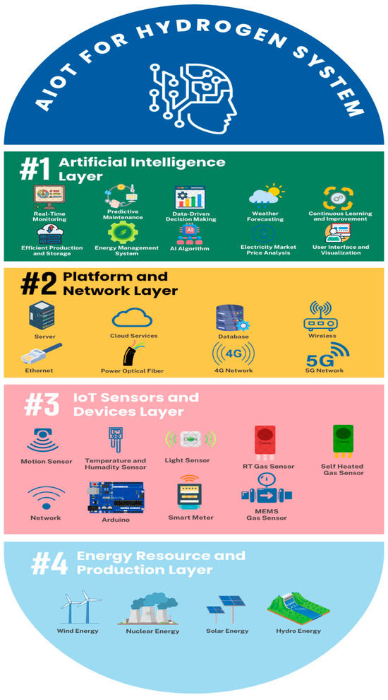 By integrating these four layers, AIoT for Hydrogen Systems increases the efficiency, safety, and sustainability of hydrogen energy operations, making them more adaptive to dynamic conditions and contributing to the spread of clean hydrogen technologies (Figure 7).