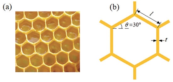 (a) Natural beehive honeycomb and (b) regular hexagonal geometry of a honeycomb [17].