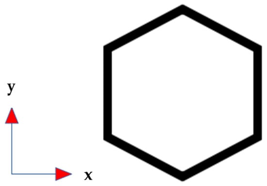 Figure 5 shows a unit planar hexagonal hollow cell with two mutually orthogonal planar in-plane directions of loading indicated. Equation (5) represents the analytical model describing the behaviour of a planar hexagonal polygon structure when subjected to loads in the in-plane directions [18,20].