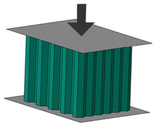 To determine the cell wall in-plane behaviour, the four polygonal hollow cells discussed here are extruded in the in-plane direction to generate 3D cells. To determine the compressive strength related to the elastic buckling behaviour, Gibson and Ashby [18] developed an analytical model representing the compression strength or crucial buckling stress of a hexagonal unit cell subjected to cell wall in-plane compression loading given in Equation (9):